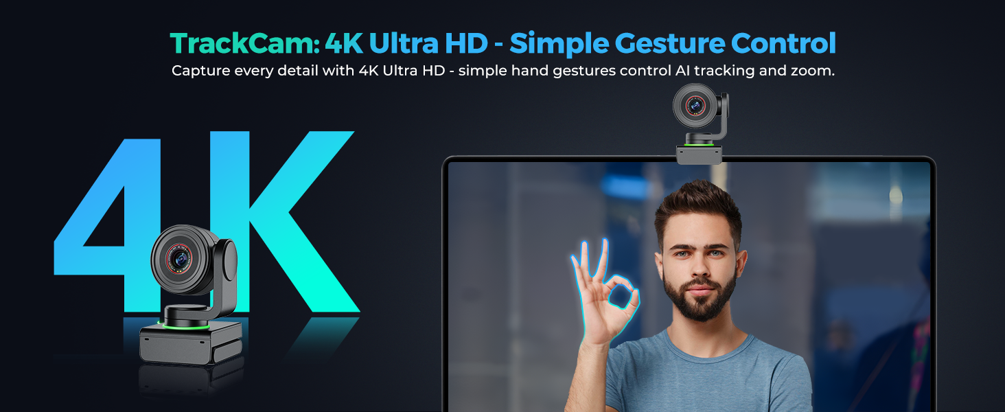 | AI Features | - AI Tracking: Keeps the main subject in focus (centered). - AI Framing: Adjusts multi-person scenes naturally. - AI Gesture Control: 6 gestures for quick and accurate control (e.g., palm to disable AI, OK sign to enable AI). |
